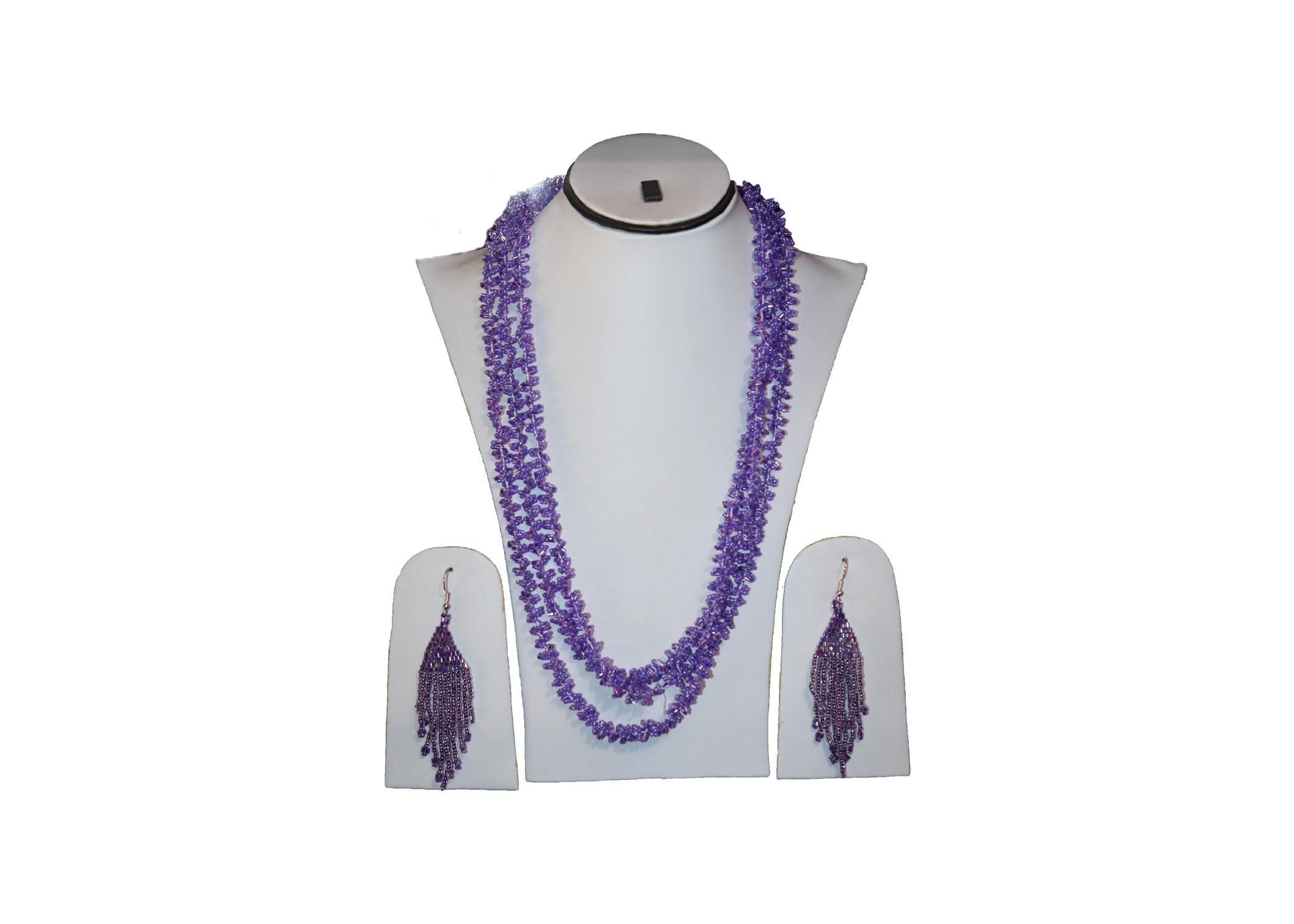 Add a royal touch to your ensemble with this elegant purple beads necklace with matching earrings. Crafted with care, the necklace features multiple strands of smooth, lustrous purple beads that create a bold yet graceful statement. The vibrant hue captures attention while maintaining a sense of sophistication, making it ideal for both casual and festive occasions.