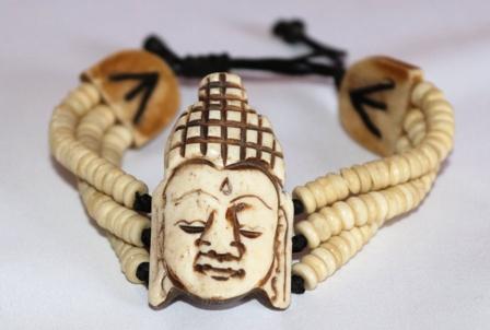Elevate your style with this handcrafted bone bracelet featuring a finely carved Buddha head at its center. Symbolizing serenity and spiritual awareness, the Buddha head is intricately detailed from ethically sourced bone, exuding a sense of calm and mindfulness. Surrounding the central piece are strands of small bone beads, carefully arranged to create a layered and textured look that enhances the bracelet’s aesthetic appeal.