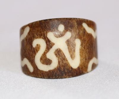 This exquisite finger ring is expertly carved from natural bone, showcasing a smooth, polished finish that highlights its organic texture and subtle variations. At its center, the timeless Om symbol is intricately engraved, embodying spiritual harmony and universal consciousness. The delicate yet bold carving captures the sacred essence of Om, making this ring not only a striking piece of jewelry but also a meaningful talisman. Its lightweight and comfortable fit make it perfect for everyday wear or as a unique accessory for meditation and mindfulness practices.