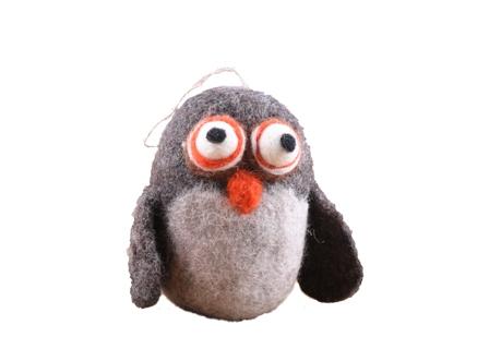 This charming felt toy features a grey owl with a soft, handcrafted design that's perfect for cuddles or display. Its large, expressive eyes bring a playful and curious personality to the piece, while the bright orange beak adds a pop of color and character. Carefully stitched details highlight the owl's wings and feather patterns, making it an endearing addition to any toy collection or nursery decor. Made from eco-friendly felt and filled with soft stuffing, this owl toy is both durable and safe for children.