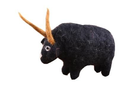 This handcrafted felt toy features a striking black yak, designed with attention to detail and traditional Himalayan charm. Made from 100% natural wool, the toy is soft, durable, and environmentally friendly. The yak is adorned with long, curved brown horns and a thick, woolly coat, giving it a lifelike and rustic appeal. Perfect for children's imaginative play, cultural education, or as a decorative piece, this felt yak brings the essence of the mountains into your home.