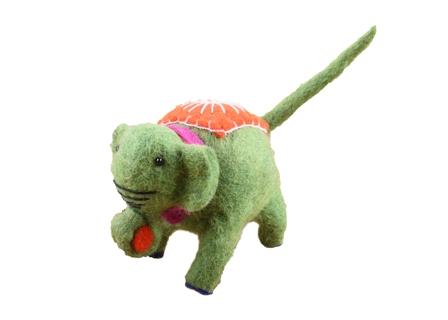 Bring charm and imagination to playtime with this handcrafted felt toy featuring a delightful green elephant. Carefully made from soft, eco-friendly felt, this playful elephant stands out with its cheerful pink belt tied around its neck and a bright orange mat draped over its back. A unique and adventurous touch is added by the log wrapped around its curved trunk, suggesting the elephant is on a mission through the jungle. Perfect as a decorative piece or a fun toy, this felt elephant blends whimsy, creativity, and traditional craftsmanship into one lovable creation.