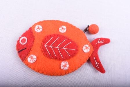 Add a splash of charm to your accessories with this adorable felt coin purse in the shape of a goldfish. Handcrafted with colorful felt, this purse features a vibrant goldfish design complete with detailed fins, a tail, and expressive eyes, bringing a playful yet practical touch to your everyday essentials. Perfect for storing coins, keys, or small treasures, it closes securely with a zipper at the top. Soft to the touch and lightweight, it's an ideal gift for kids and animal lovers alike.