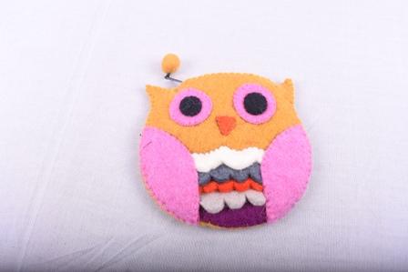 Add a touch of charm to your everyday essentials with this adorable handmade felt owl coin purse. Crafted with care using high-quality felt, the purse features a vibrant owl design in mustard yellow with large pink and black eyes, a small orange beak, and pink wings. The body is decorated with scalloped felt layers in white, orange, gray, and purple, resembling feathers. A soft felt ball is attached to the zipper for a playful touch and ease of use. Lightweight and compact, it’s perfect for carrying coins, keys, or small accessories while adding a fun, whimsical flair to your collection.